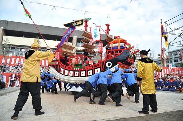 長崎くんちは、長崎の氏神「諏訪神社」の秋季大祭で、毎年10月7日から3日間、町を挙げて催されます。寛永11年(1634年)に、二人の遊女が諏訪神社神前に謡曲「小舞」を奉納したことが長崎くんちの始まりと言われています。奉納踊には異国趣味のものが多く取り入れられ、昭和54年には、国指定重要無形民俗文化財に指定されています。長崎伝統芸能振興会は、長崎市の経済発展と観光事業振興の一翼を担う、「長崎くんち(神事を除く)」の円滑なる運営と振興を促進し「演し物だしもの」の保存育成を図ることを目的として設立・運営しています。